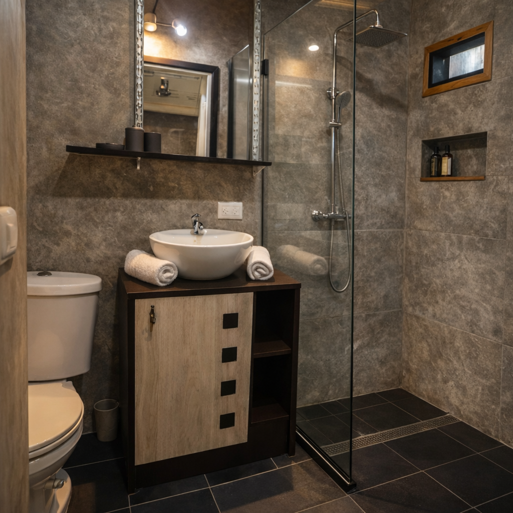 A calm mood, design-led cabin inspired by boutique city stays.