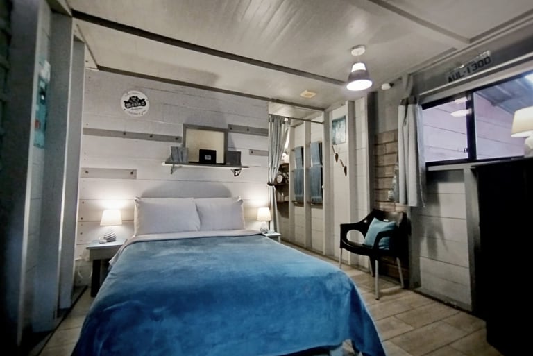 La cabaña Concreto es una mezcla de madera y estilo industrial con concreto en su decoración. La CONCRETO dispone de cama doble (1,40 m de ancho), baño privado, escritorio, wifi de fibra óptica, ducha de agua caliente y acceso al patio central. El precio por noche incluye desayuno e impuestos para dos personas. El precio por noche puede variar en función de fechas especiales o días festivos.